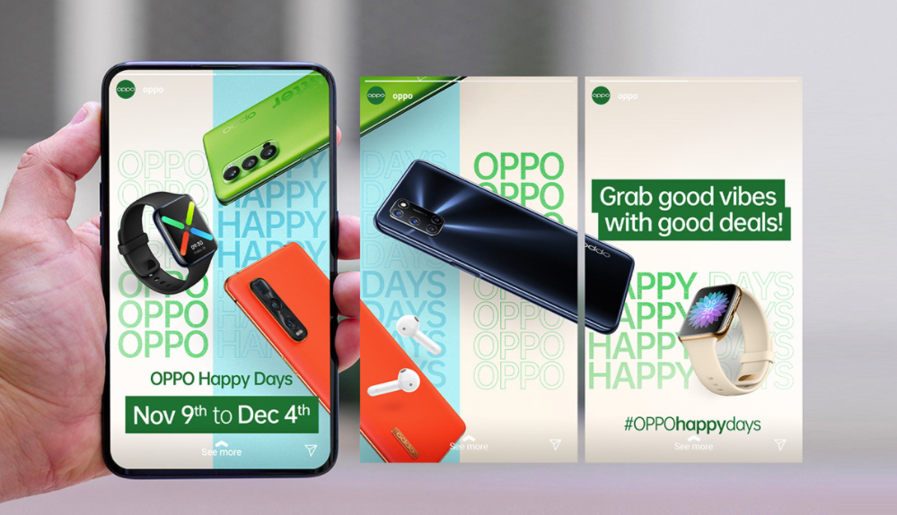 Oppo sème un peu de joie avec les Oppo Happy Days. Une opération qui respire la bonne humeur, avec une accroche ‘Grab good vibes with good deals’ et des posts réseaux sociaux rayonnants de positivité. Le tout in english.
